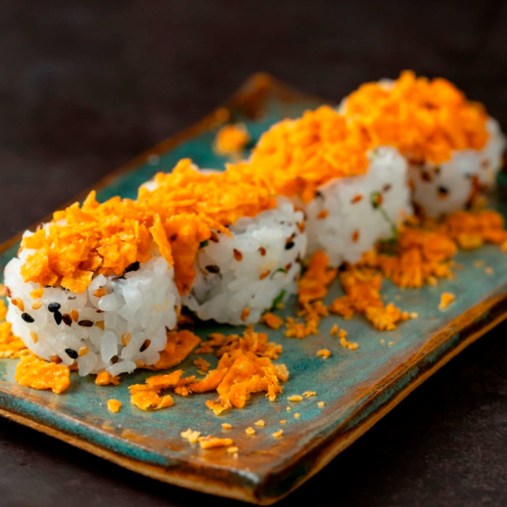 Shrimp, rice, cream cheese, “Doritos,” and biquinho pepper.